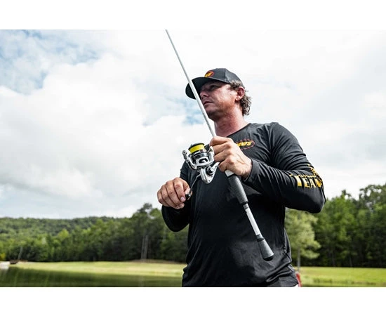 Sporting an all-new modern design, this 8-bearing spinning reel leaves no doubt as to its smoothness with the very first turn of its handle. When the reeling stops, it stops dead in its tracks thanks to a rock-solid Zero Reverse one-way clutch bearing. The reel’s frame is dependable graphite construction that looks great in its metallic finish. Compact gear box with a thin profile. Double anodized, knurled aluminum spool is ready for braid, mono, or fluoro.
