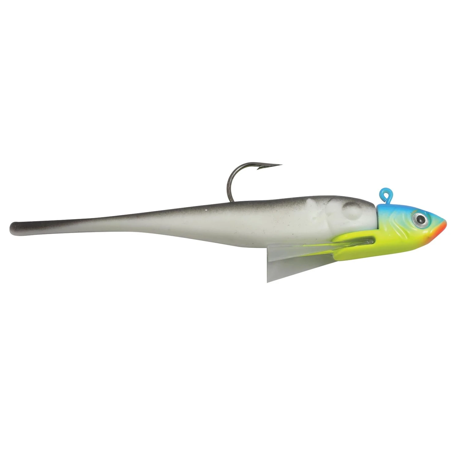 The Rippin’ Minnow relies on a gliding jig head at the forward part of the bait that propels the entire lure in a darting motion throughout the water column. The Rippin’ Minnow features a pre-rigged soft, chewy body that both acts and feels like the real thing. It’s a perfect cast and retrieve bait which also fishes well vertically for pinpoint, precision fishing when the bite requires detail and life to the bait.