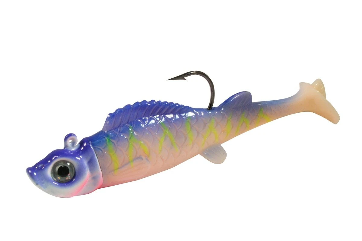 Proven for bass, crappies, walleyes, trout, perch and pike. Cast, vertically jig or slow-troll. Works equally well on structure and in weeds or open water for suspended fish. Stand-up style jig head is ideal for pounding and dragging bottom. Paddle tail produces hard-thumping action, even at slow speeds.