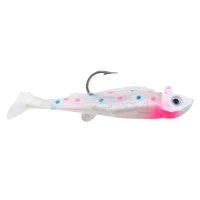 The MIMIC MINNOW® SHAD is a miniature swim bait that features a lifelike Baitfish- Image™ shad body and hyperactive “paddletail” that swims and wiggles to mimic alive bait minnow. It sports a highly reflective “holographic” FlashFoil body that flashes & shimmers like iridescent fish scales and bright eye catching paint schemes that excel in stained water.
