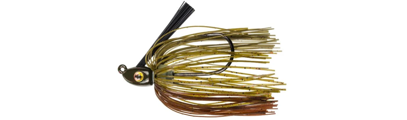 The Strike King Tour Grade Swim Jig is a standard swim jig built with quality components to ensure it is tournament ready. Designed to catch more fish, it employs a streamlined, balanced head for an enhanced swimming action. The head also features life-like eyes and a variety of colors that match up perfectly with the Strike King Perfect Skirts included with each jig. Jig is built around a medium wire ultra sharp hook. Try a Rage Craw, Rage Menace, or Rage Swimmer as a trailer and hold on, bass love them all. Available in 10 colors and 3 weight options: 1/4 ounce, 5/16 ounce, and 3/8 ounce.