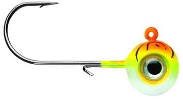 This VMC® upgraded version of the traditional Aspirin-shaped heads provides added control. 3-D holographic eyes create the illusion of a wider profile while adding realism. Assembled with a VMC® Premium high-carbon steel hook with top of the line black nickel finish. The wide range of colors includes UV Bright finish colors that guarantee you to catch more fish in all water conditions.