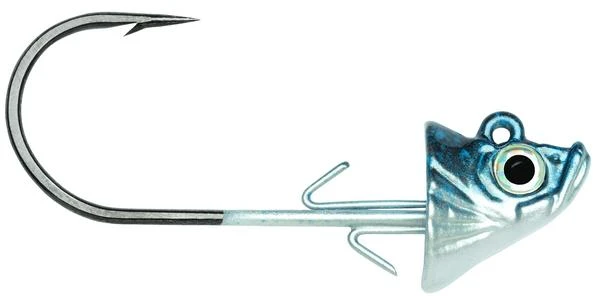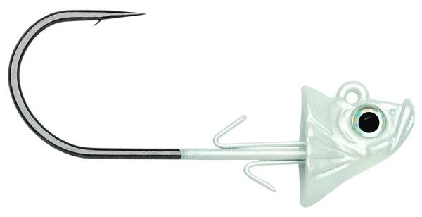 VMC Swimbait Jigs feature a life like baitfish head. When paired with a swimbait, these jig heads resemble a baitfish. These jig heads feature flared gills, 3-D holographic eyes, and a concave head which allows your swimbait to nestle right up tight next to the jig head.